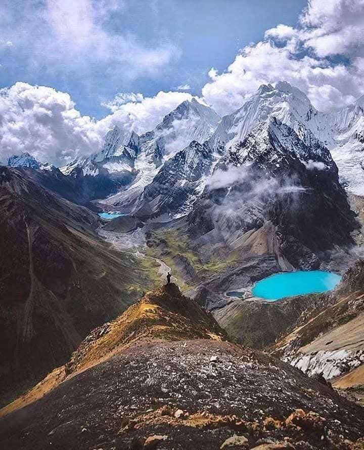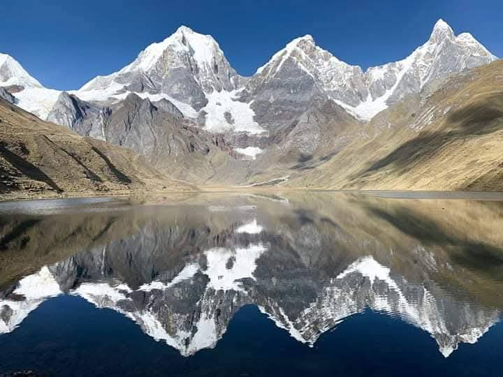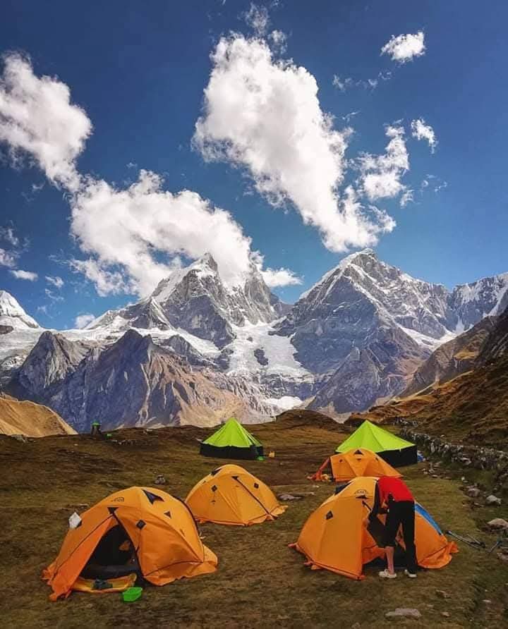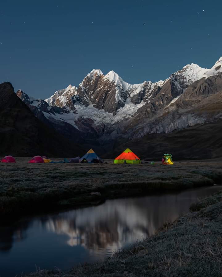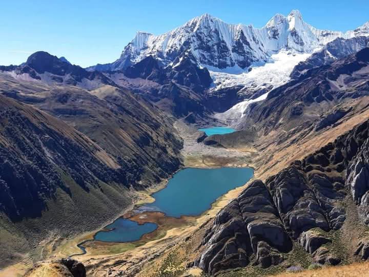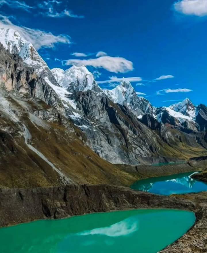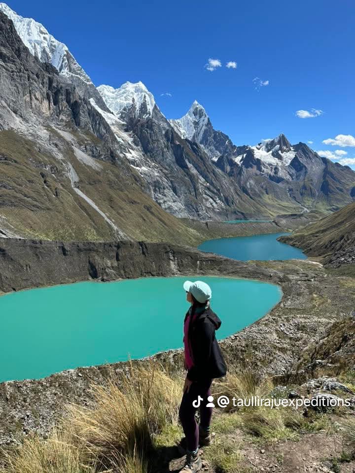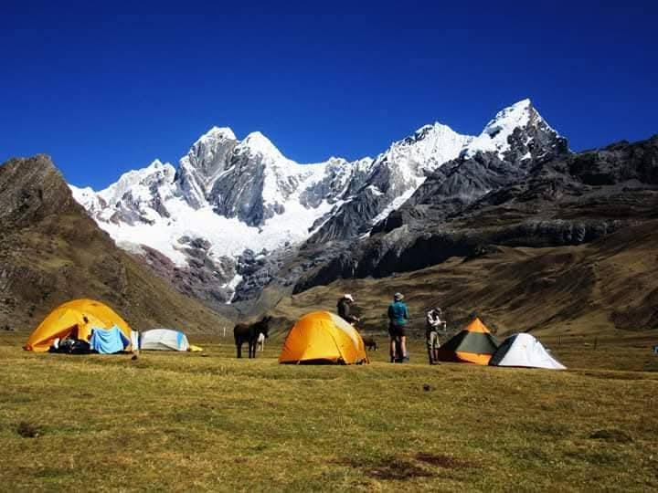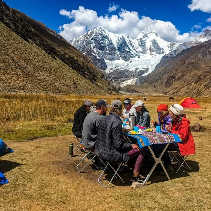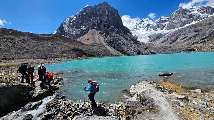 Desde el primer paso, los senderos bien marcados te llevarán a través de paisajes sobrecogedores, donde glaciares brillantes, picos nevados y lagunas de un azul profundo se entrelazan en una danza mágica. Cada día del trekking ofrece vistas panorámicas que hacen que el alma se eleve, con alturas que superan los 6,000 metros, como el icónico Nevado Yerupajá, el segundo pico más alto del Perú.